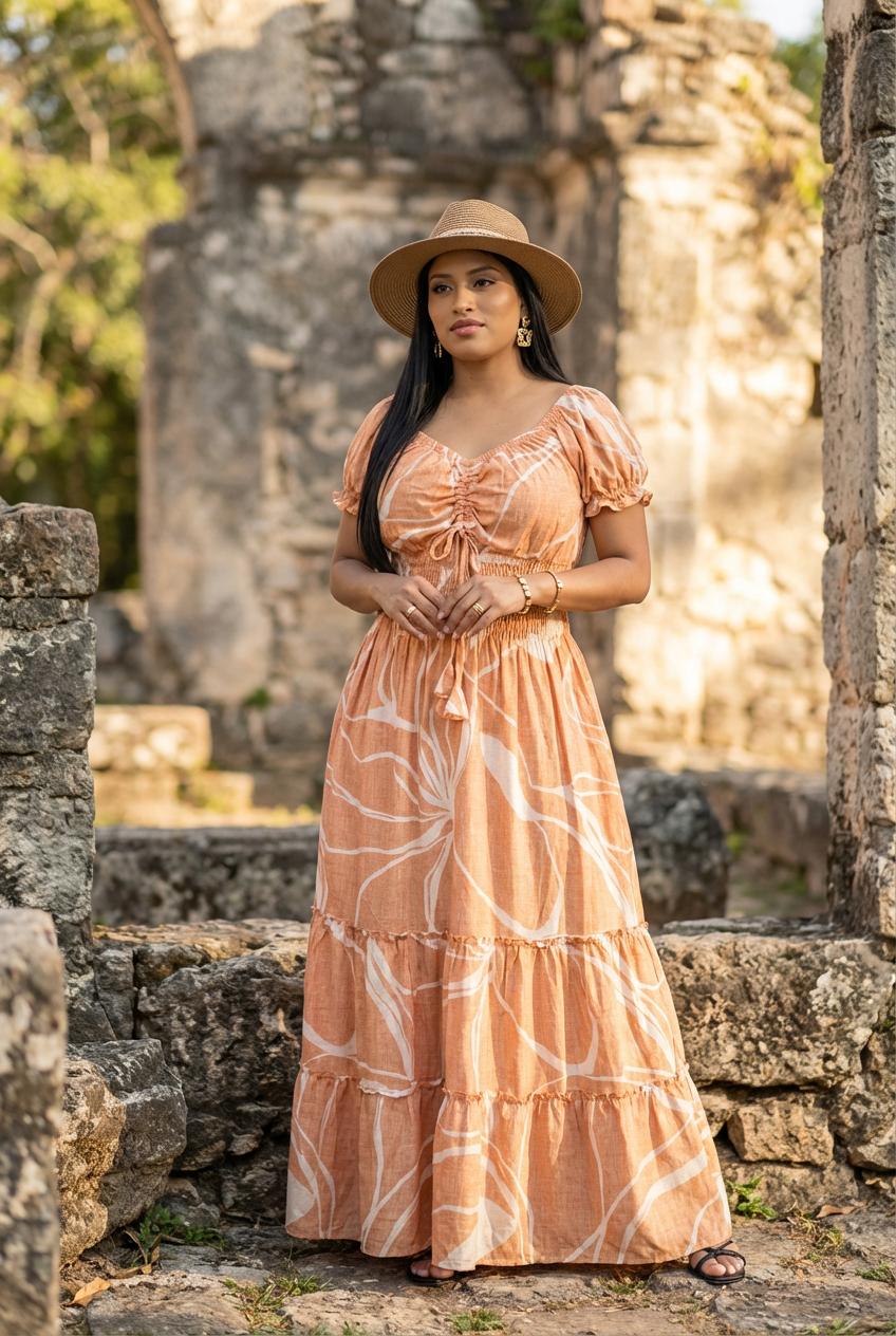 VESTIDO SERENA SLIM :Elegância leve e feminina para todos os momentos. Modelagem que valoriza o corpo com caimento fluido, ombro a ombro delicado e cintura ajustável que define a silhueta com conforto. A construção da peça destaca o equilíbrio entre sofisticação e praticidade, com uma saia em camadas que proporciona movimento natural e um visual leve, criando um efeito harmonioso a cada passo. A estampa em tons quentes acrescenta personalidade e modernidade, tornando o vestido uma escolha marcante sem perder a delicadeza.